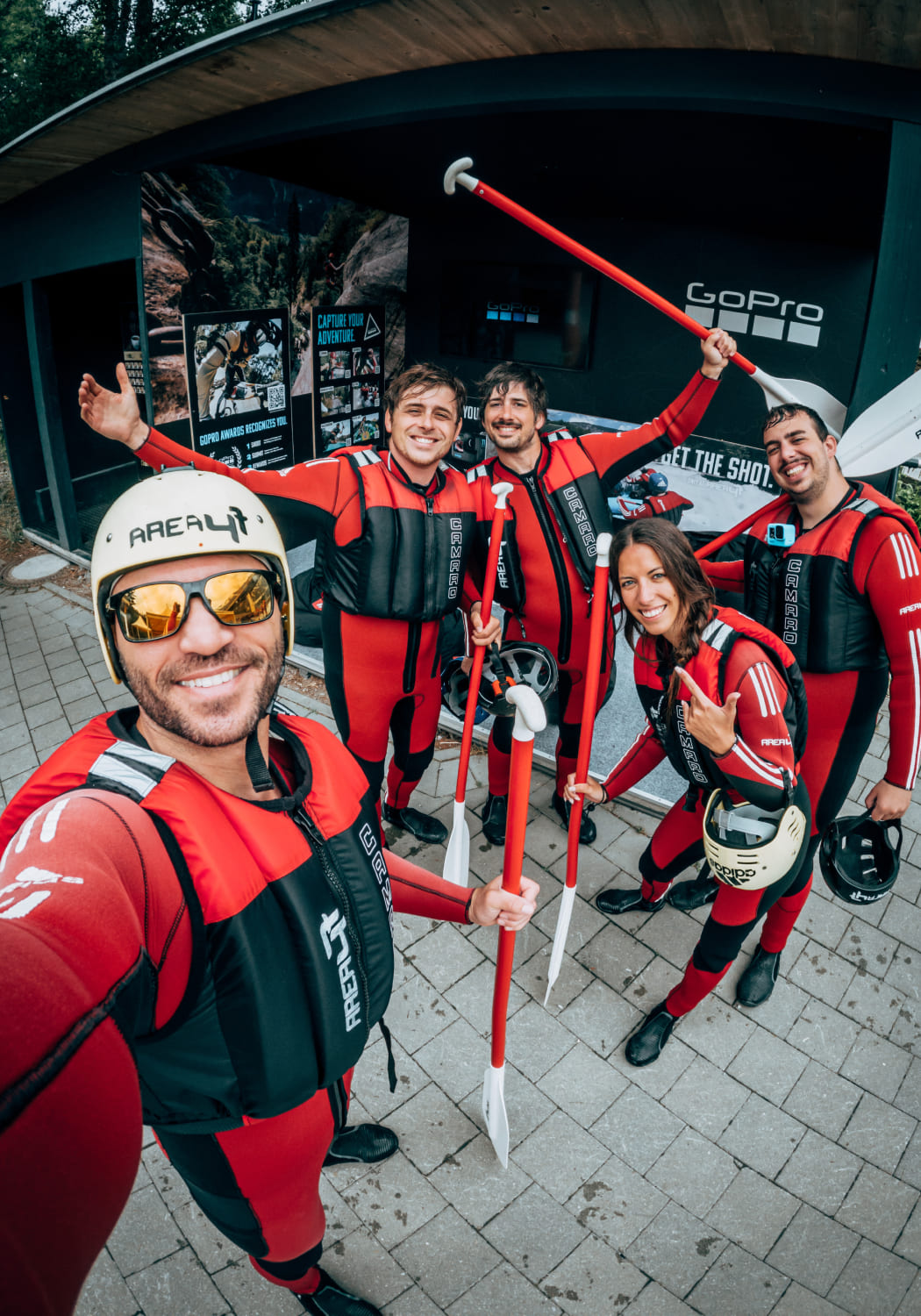 Die gesamte Ausrüstung wie Neoprenanzug, Schuhe, Helm und Schwimmweste bekommst du von uns. Vor Ort findest du Umkleidekabinen, Spinde und Duschen.